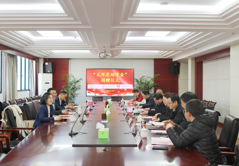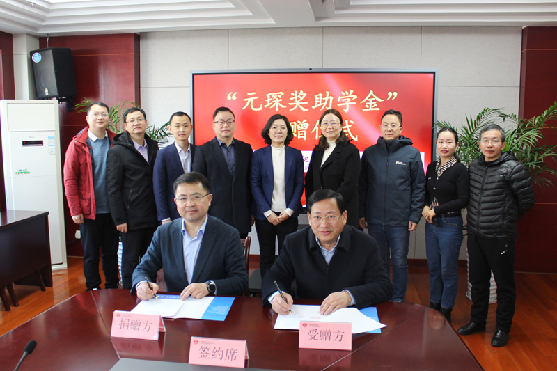 1月9日,安徽元琛环保科技股份有限公司(以下简称“元琛科技”)与合肥大学在合肥大学南艳湖校区举行了“元琛奖助学金”捐赠仪式。元琛科技执行总裁陈志、技术总工周冠辰、人力资源总监张利利,以及合肥大学能源材料与化工学院党委书记刘沛平、院长胡坤宏、副院长鲁红典、合肥大学安徽中德教育合作基金会秘书长何世昆等出席了捐赠仪式。